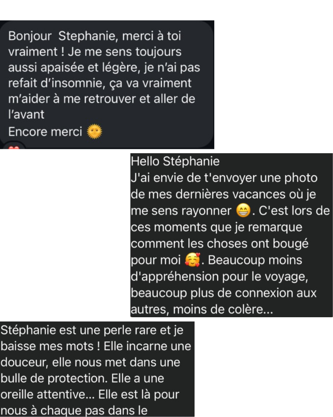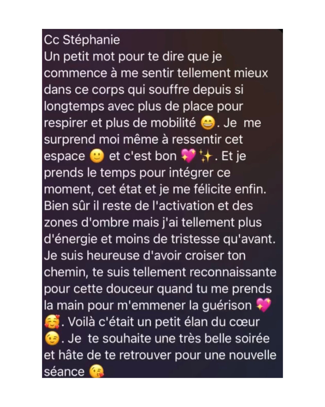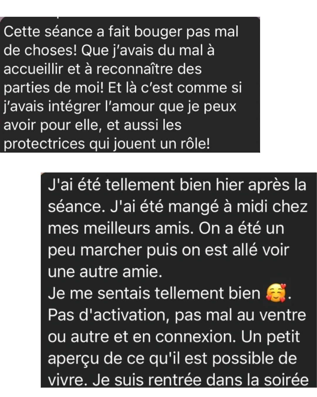 Les pensées se calment, les croyances se réajustent, les symptômes s’apaisent naturellement et la sécurité intérieure se réinstalle.